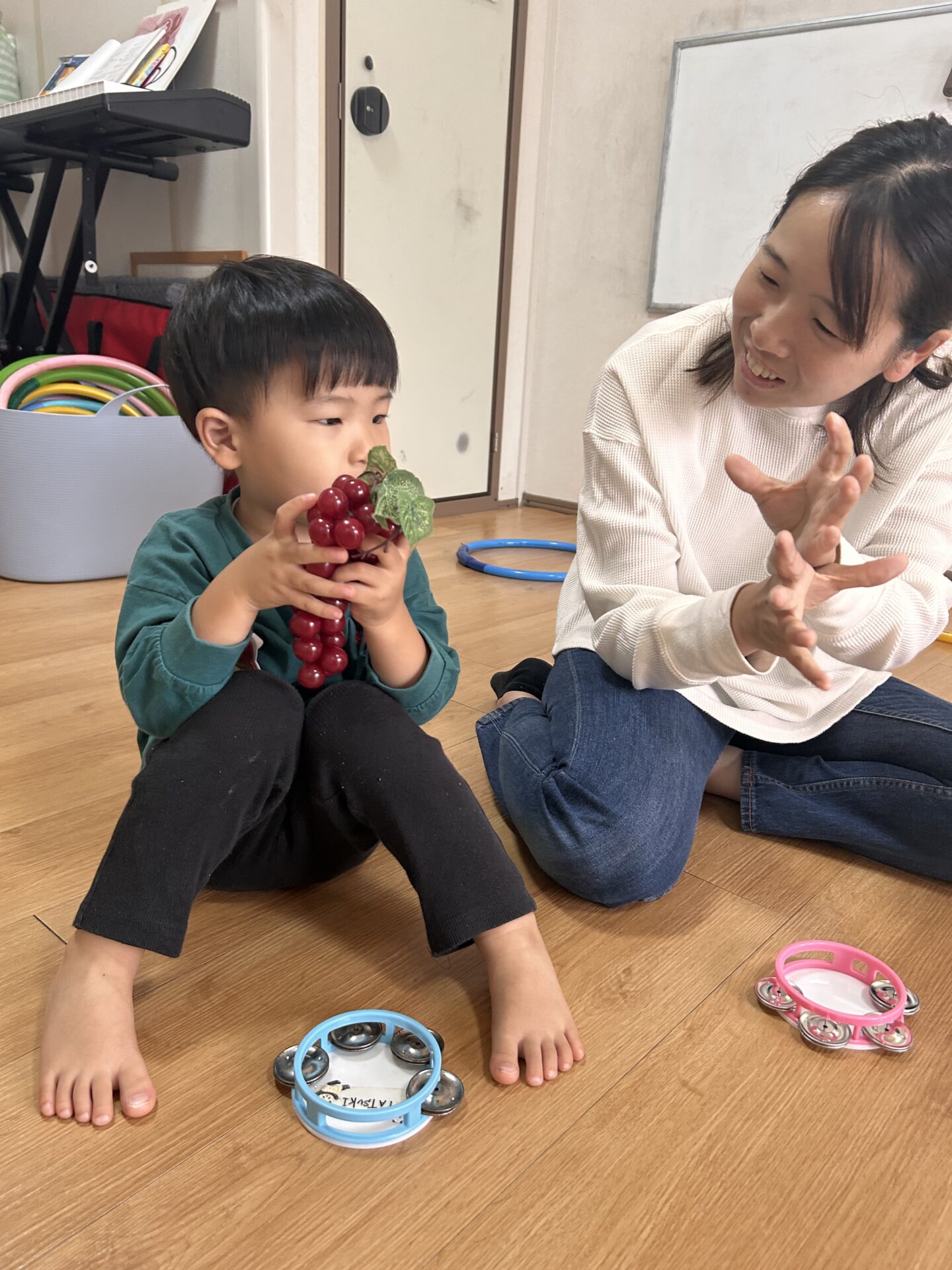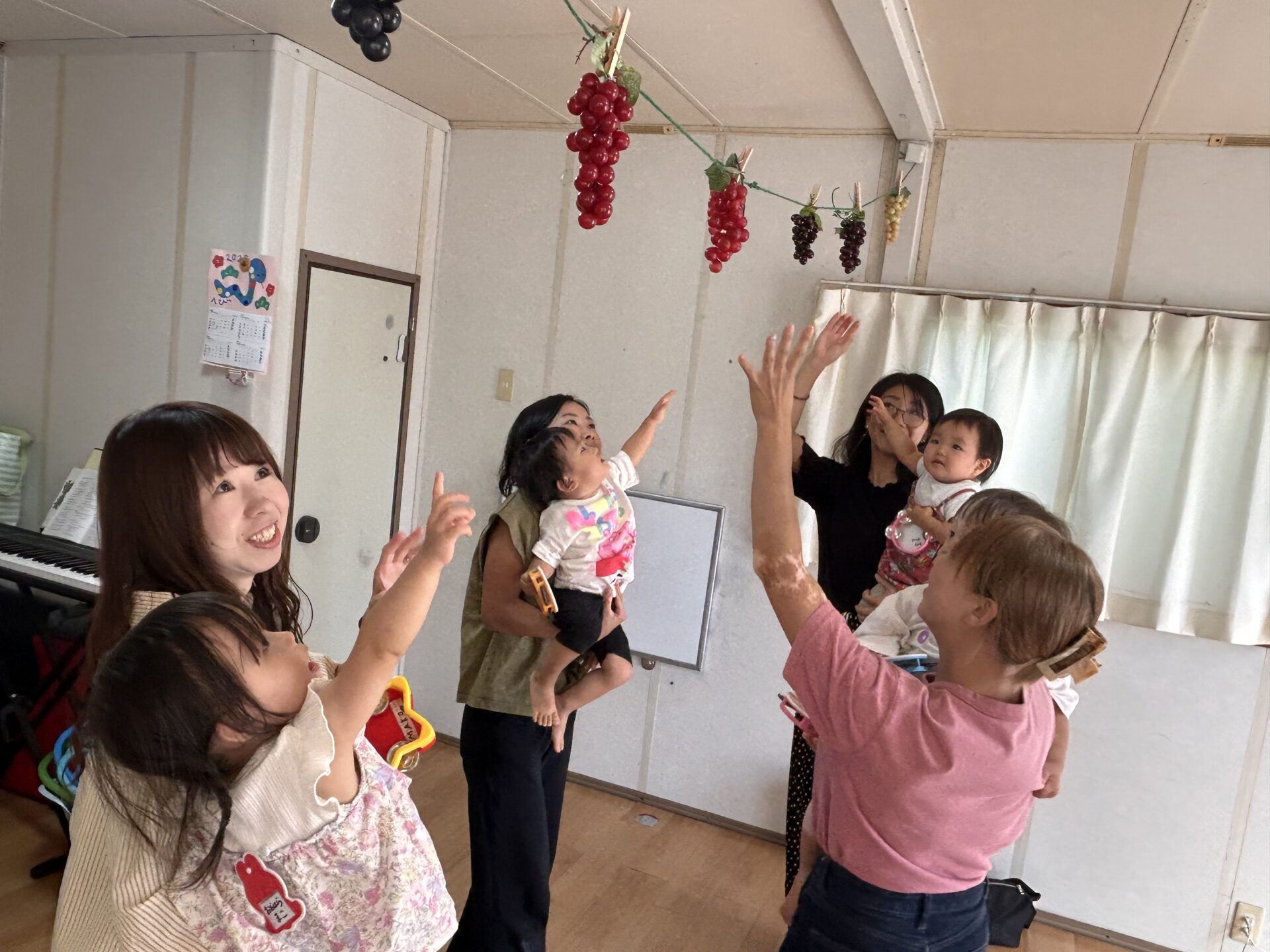 お話がこれからのお友達も、お教室に入るとすぐに見つけて「あ!あ!」ぶどうを指さしてくれます。